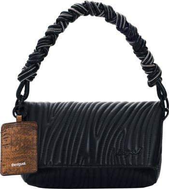 This embossed crossbody is made from sleek faux leather and fashioned with a woven strap to enhance its day-to-evening look.