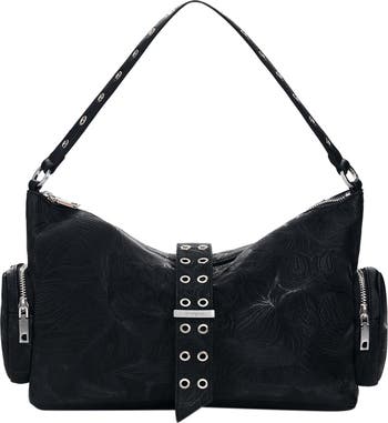 Intricate embossing and polished grommet hardware make this faux-leather handbag the perfect way to elevate your everyday style.