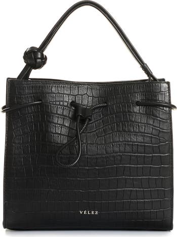 Elevate your essentials with a design that fuses beauty and functionality. This bowling bag, crafted in croc-embossed leather, reflects Vélez's artisanal heritage in every detail.