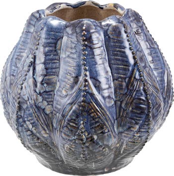 Bring sophisticated artistry to any space with this Embossed Stoneware Planter/Vase. Designed with a reactive blue glaze, each piece varies uniquely, creating a dynamic and handcrafted aesthetic. Its intricate embossed texture seamlessly blends with Garden, Outdoor, Patio, Beach, and Coastal-inspired settings, making it perfect for showcasing plants or floral arrangements. Crafted from durable stoneware, this planter/vase offers a refined yet sturdy design, ensuring both beauty and functionality. Measuring 8.5 inches in diameter and 7.75 inches in height, it delivers a timeless decorative touch wherever it’s placed.