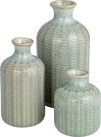 Storied Home Embossed Stoneware Vases with Reactive Glaze, Grey, Set of 3, Main, color, Grey