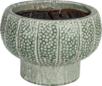 Embossed Terra-cotta Footed Vase Planter with Dot Pattern and Crackle Glaze, Green