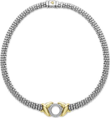 Signature Caviar beading glints in sterling silver along this rope bracelet highlighted by a pavé diamond circle and 18-karat gold Xs.