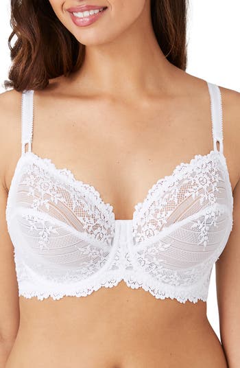 Sheer-topped cups are detailed with feminine lace in a beautiful underwire bra.