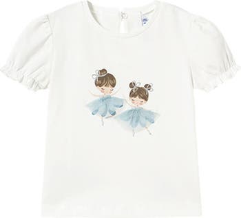 This soft t-shirt features a delicate embroidered ballerina design, adding a touch of elegance and charm to any casual outfit.