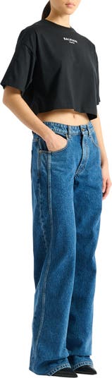 Embroidered cotton jersey Balmain Paris T-shirt Cropped fit Contrasting Balmain Paris logo embroidered on the front Round neck with ribbed trim Short sleeves Main material: 100% cotton Made in Italy Item: HF1EE145BD10