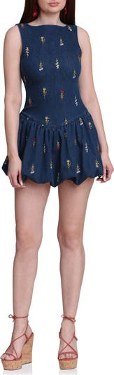Embroidered Bubble Hem Denim Minidress