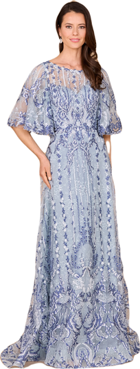 Embroidered, Cape Sleeve A-line Gown