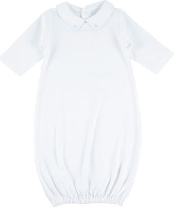 Our Embroidered Collar Day Gown is a sweet edition to our basics collection. This gown has a carefully hand embroidered details on the collar. Heirloom quality made with the utmost care. This Embroidered Collar Day Gown is comfortable enough to nap in, and elegantly designed to wear during the day. Made of 100% Pima Cotton with a gathered band at the opening for the feet. The perfect gift to give your favorite newborn and to also receive!