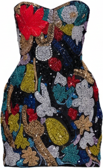 Unveil the artistry of couture in the Embroidered Corset Mini — a captivating statement dress that celebrates the beauty of nature through impeccable craft. Designed for the woman who commands attention with poise and individuality, this showstopping silhouette brings vibrant energy to every room it enters. Expertly constructed with a structured corset interior, this mini dress sculpts and supports while allowing fluid, confident movement. The base layer of premium mesh creates a smooth second-skin foundation, while the exterior showcases exquisite hand-woven embroidery — a botanical tapestry rich in texture, color, and depth. Every leaf, every bloom, every shimmering moment is intentionally placed, making this piece not just a dress, but a wearable work of art - ideal for luxury soirées, carpet events, or an unforgettable night out in elevated resort glamour.