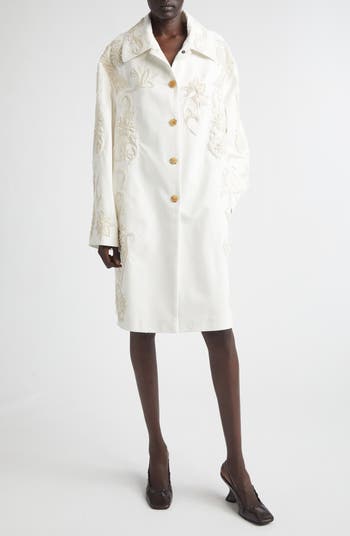 Embroidered Cotton A-Line Coat