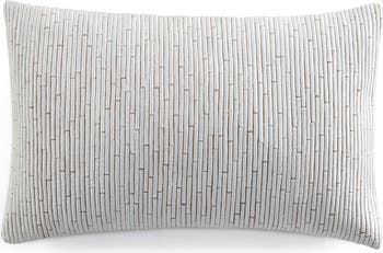Bamboo-inspired embroidery softly textures this cotton-and-linen accent pillow made with soft feather fill.