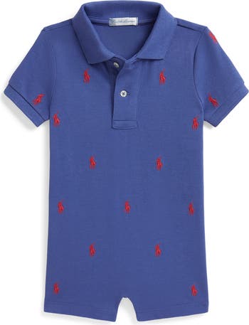 Classic Ralph Lauren details add a perfectly preppy twist to this polo-inspired cotton-piqué romper.