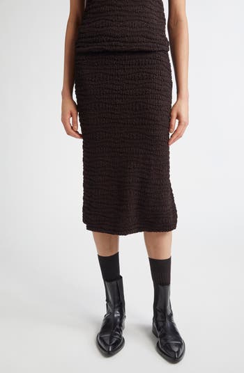 The German designer redefines minimalism with this Italian-made midi skirt where intricate embroidery transforms a sleek silhouette into a textural masterpiece.