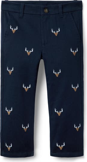 Our classic twill pant gets a charming twist with embroidered deer icons. In a straight leg silhouette, it's perfect for any festive occasion.