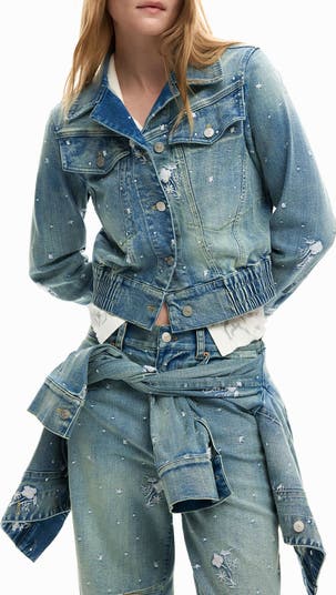 Layer on this stretch-kissed denim jacket and watch your look bloom with beaded and embroidered floral elements that soften its edgy aesthetic.