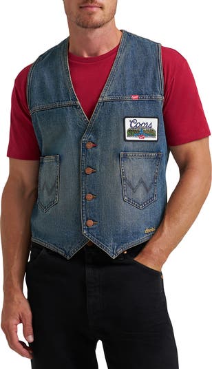The opening riff of a country song tells the style story for this weekend-official vest covered in iconic brand ID.