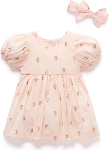 Purebaby Embroidered Dress & Headband, Main, color, Sprig Broderie