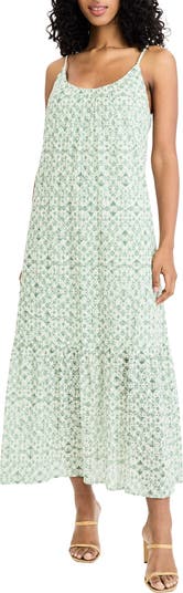 Airy embroidered eyelets enhance the whimsical charm of this flowy sundress framed by beaded tie straps and a fluttery flounced hem.