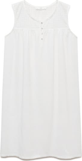 Embroidered Eyelet Yoke Sleeveless Cotton Nightgown