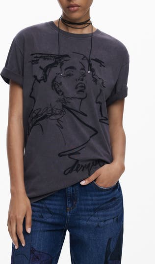 Cord embroidery creates a uniquely chic facial outline on this boxy cotton T-shirt that adds a dose of streetwear style to your off-duty look.