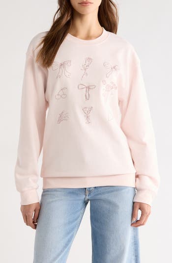 Flowers and sweet bows, fruit and martinis—celebrate a few of your favorite things in this embroidered cotton-blend fleece sweatshirt.