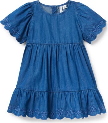 A signature piece to dress up or down. Designed in breezy chambray with embroidered florals at the sleeves and hem.