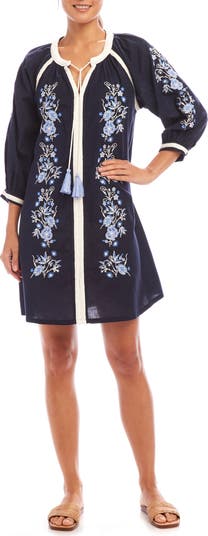 Bring bohemian style to your resort-ready rotation when you pack this leggy cotton-blend dress fronted by a split neckline and embroidered in gorgeous blooms.