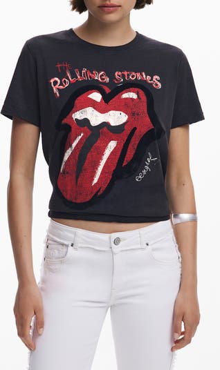 Be iconic in this pure-cotton T-shirt stamped with a rocker-inspired graphic and accented with edgy embroidery.