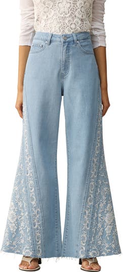 Intricate floral embroidery amplifies the boho vibes on these flared jeans cut from low-stretch denim so you can roam the festival circuit in stylish comfort.