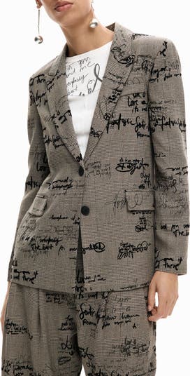 Embroidered lettering brings statement style to this single-breasted blazer finished with subtly peaked lapels.