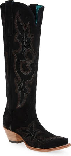 This standout suede knee-high boot is embellished with striking embroidery and crafted with a snip toe for authentic Western style.