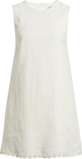 This mini shift dress in 100% linen features an easy, A-line fit and embroidered scallop hem. Made to throw on and go, it's perfect for effortless everyday wear.