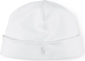 Smooth cotton interlock feels supersoft against baby's skin in this cuffed beanie embroidered with Ralph Lauren's preppy polo rider—iconic since its '71 debut.