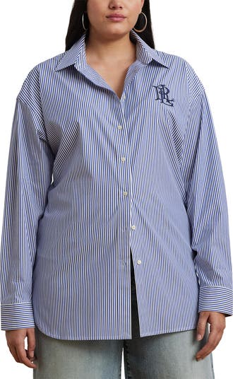 A scripted logo adds an extra touch of timeless tradition to a versatile striped button-up cut from stretch-kissed cotton.