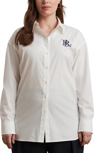 An embroidered logo adds a refined touch to a crisp button-up cut from stretch-kissed cotton.