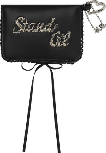 This slim wallet is a stylish choice to keep your cards and cash secure with its polished hardware, scallop lace and bow accent offer lasting charm.