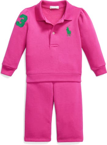 Your sporty baby will show off some signature style in this embroidered polo-sweatshirt that's paired with matching sweatpants—both in cozy cotton-blend fleece.