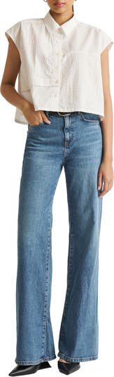The perfect crop top to get you through your week, our 'Embroidered Panel Crop Top in White.' will definitely be part of your weekly wardrobe rotation. Its oversized fit, paneled design, and chic cap sleeves ensure a fashionable yet comfortable ensemble. Pair it effortlessly with skirts for summer or high-waisted pants for an elevated casual look. This crop top is a perfect addition to your collection, blending style and comfort seamlessly.