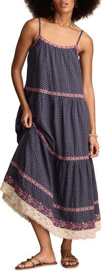 Whimsical and wearable, this tiered cotton sundress features embroidery, a soft print and lace trim that add just the right amount of vintage-inspired flair to your everyday lineup.