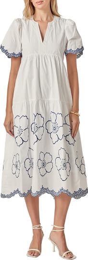 English Factory Embroidered Puff Sleeve Cotton Sundress