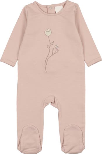 Manière Embroidered Rose Footie, Main, color, Mauve