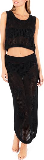 Tonal embroidered palms lend vacay vibes to this matching set made of a crochet-inspired open-stitch knit that's delightfully sheer and breezy.
