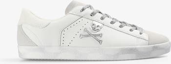 Sneakers made of 100% leather and contrasting embroidered silver side skull