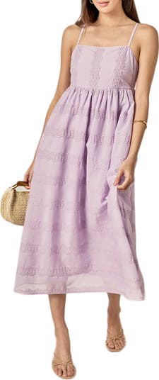 Enchanting embroidered stripes sweeten this airy chiffon midi suspended by slinky adjustable straps and finished with a flared skirt.