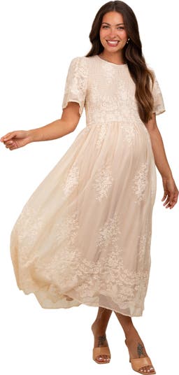 Embrace timeless elegance in our Embroidered Smocked Maternity Midi Dress. Designed with an adjustable smocked bodice for a comfortable, bump-friendly fit, this dress flatters your shape at every stage. Beautiful floral embroidery adds a delicate, feminine touch, while the soft, breathable fabric keeps you cool and comfortable. Perfect for baby showers, brunches, or every day, this versatile midi pairs effortlessly with your favorite sandals or heels. Stay stylish and confident throughout your pregnancy with this dreamy must-have piece!