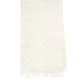 This table runner is made from handloomed fabric and is decorated with hand-embroidered dots in ocher yellow. Embroidery is an important part of our production, as it can be made everywhere, even in remote villages with few other jobs available. The women can work from home at their convenience, or in the fellowship of a producer group at a local Salvation Army center. The fabric is handwoven at traditional looms at our workshop in Jashore, Bangladesh