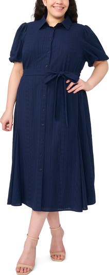 Enchanting embroidery textures this cotton maxi framed by charming puff sleeves and centered with a defining tie belt.