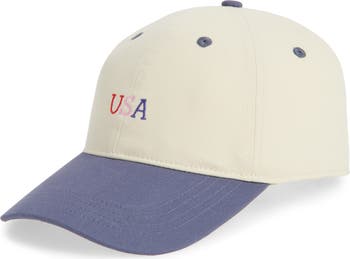 Complete your casual look with this cotton-canvas baseball cap embroidered with a tricolored 'USA' on the front .