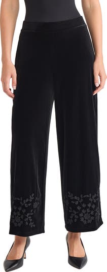 Velvety soft pants are made with wide ankle-grazing hems and accented with enchanting embroidery.